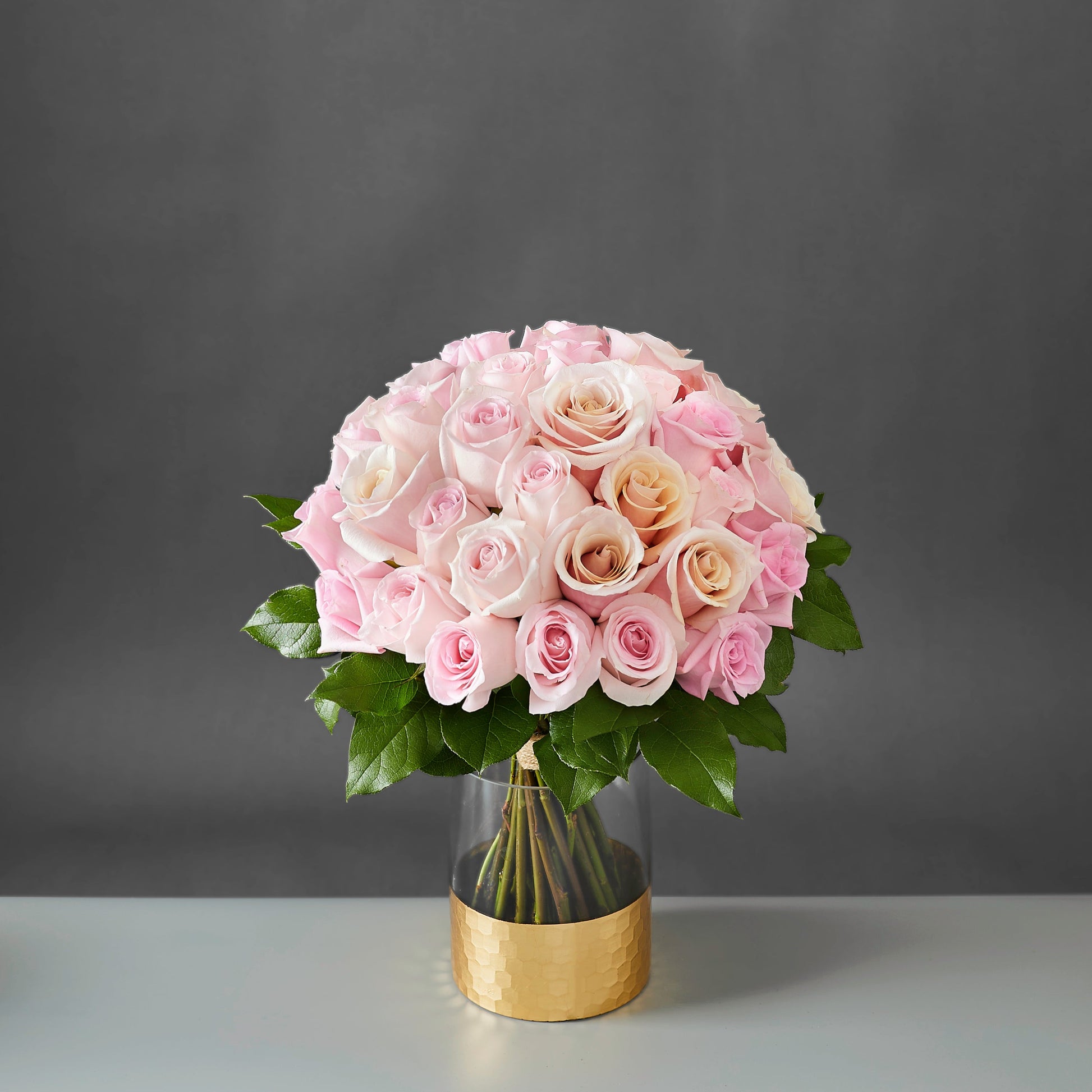 3 shades of light pink roses & Greenery