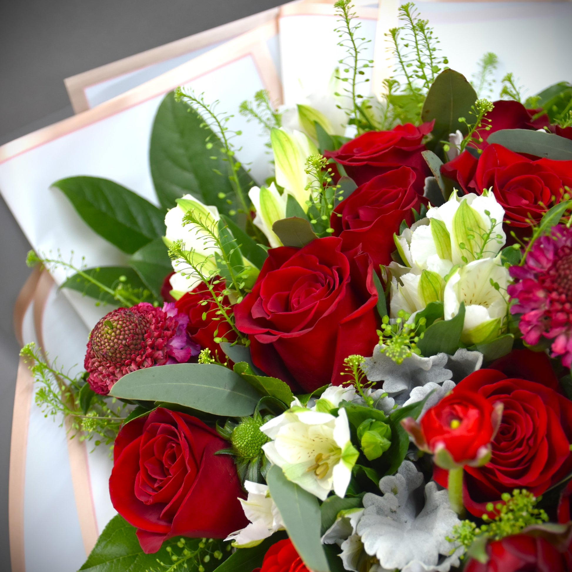*All our bouquets come wrapped in packing paper and tied with ribbon, vase is excluded. Click to see photos