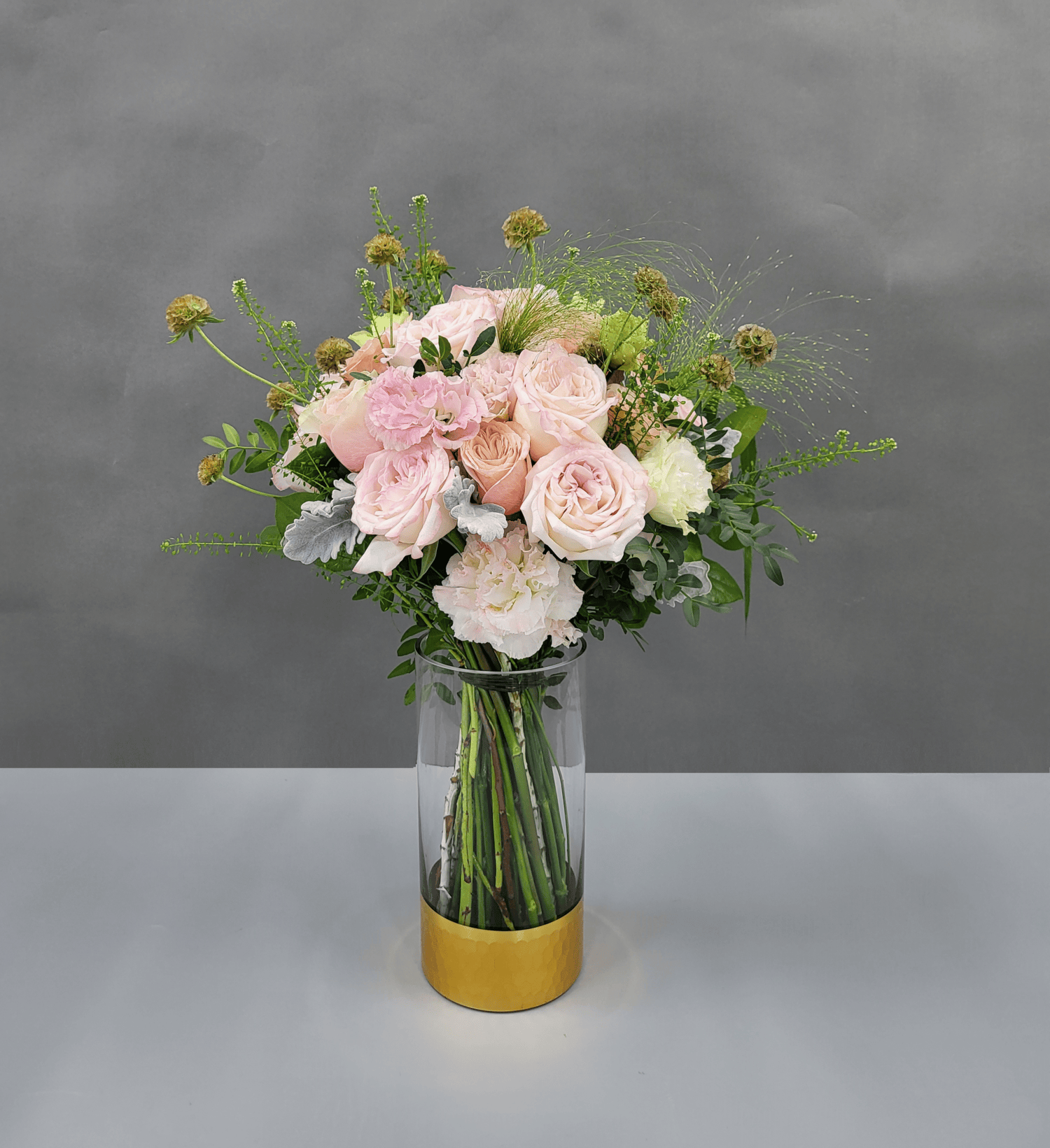 *All our bouquets come wrapped in packing paper and tied with ribbon, vase is excluded. Click to see photos